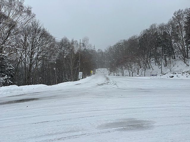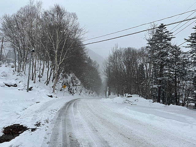 丸沼高原付近の国道120号線は完璧な雪道になっています。
